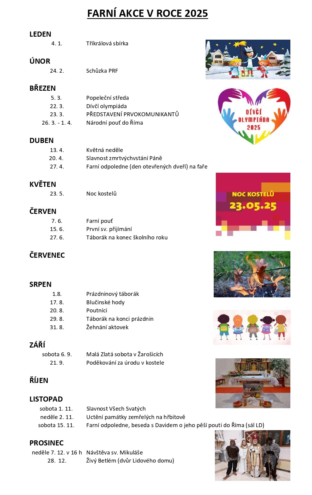 Plánované farní akce na rok 2025, průběžně budou doplňovány, případně aktualizovány.