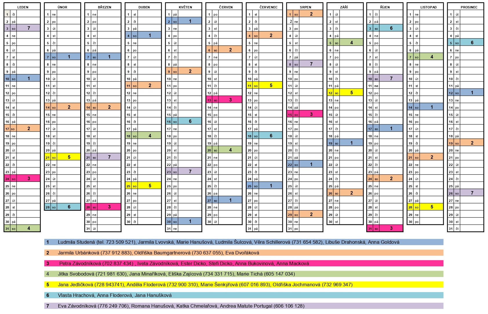 Rozpis úklidu kostela v roce 2026